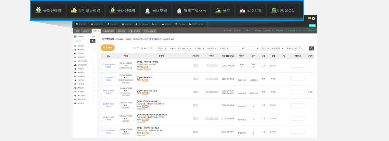 - 골프 부킹, 여행상품 공급/판매 시스템