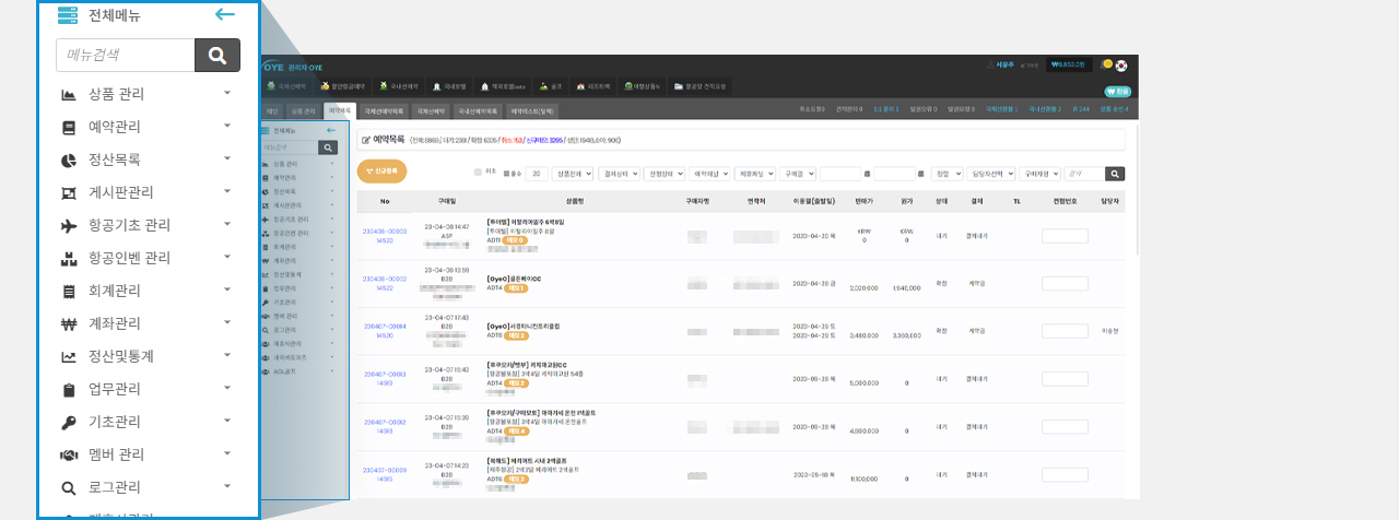 상품 판매도 중요하지만 예약관리 및 정산관리가 더 중요합니다.
