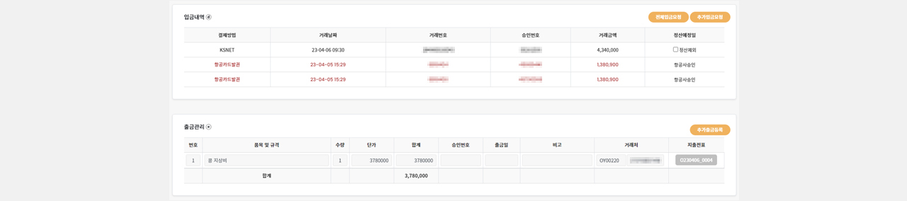- 실시간 예약 상품 입금 체크 / 출금 관리 / 상품 정산 등의 시스템 제공